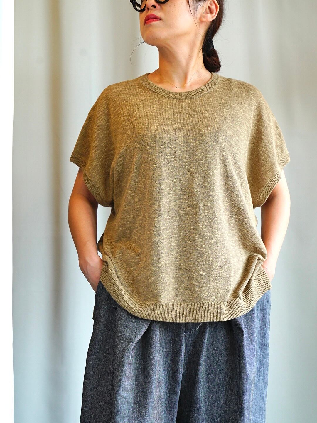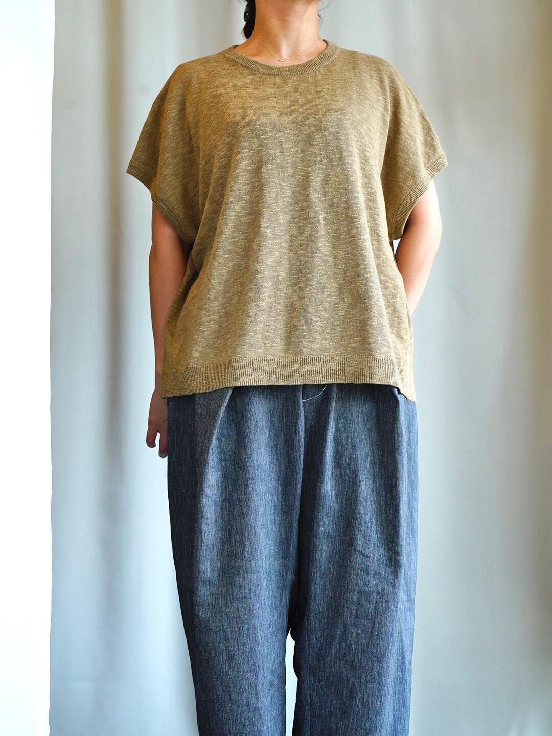 リネンコットンスリットニットベスト