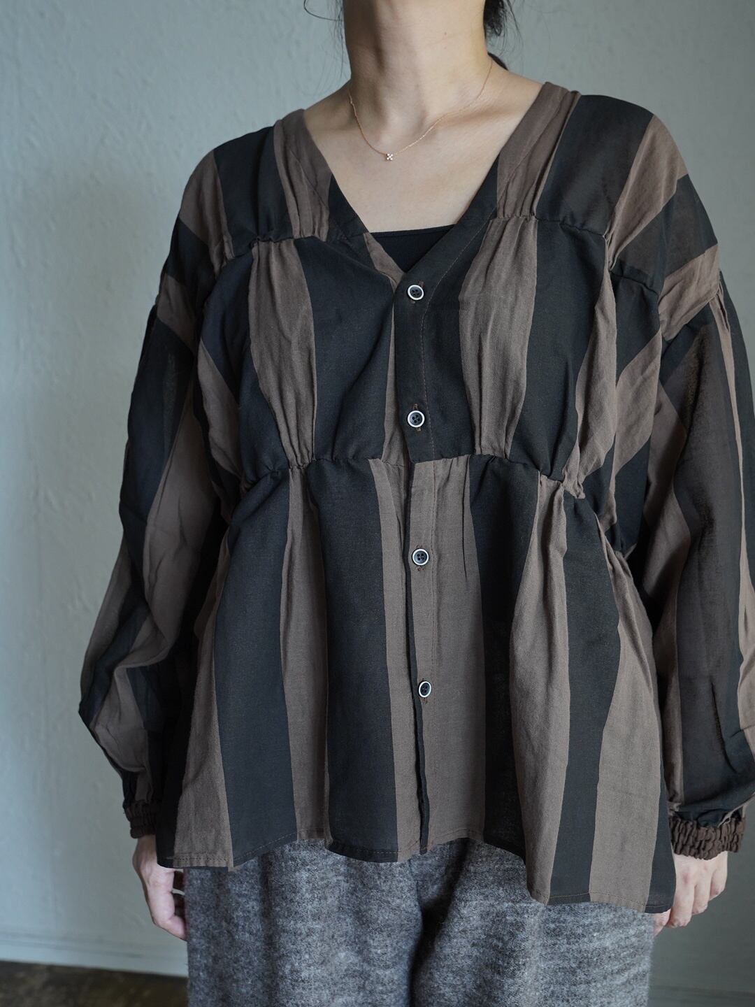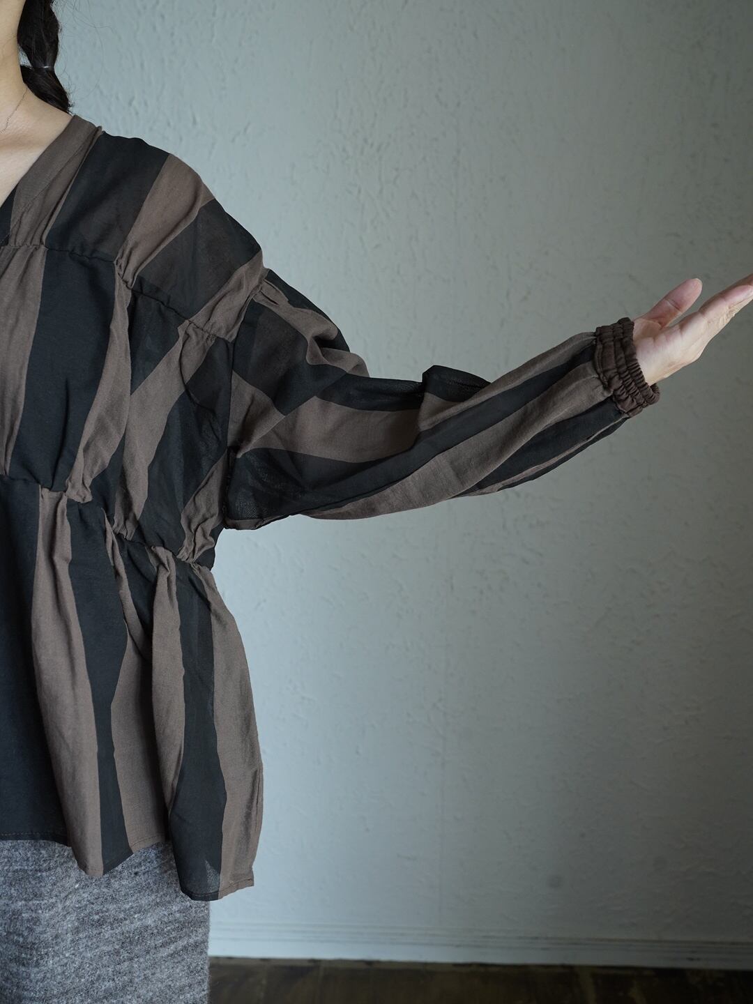 ESTROISLOSE シースルーストライプコットンペプラムシャツ EB25323