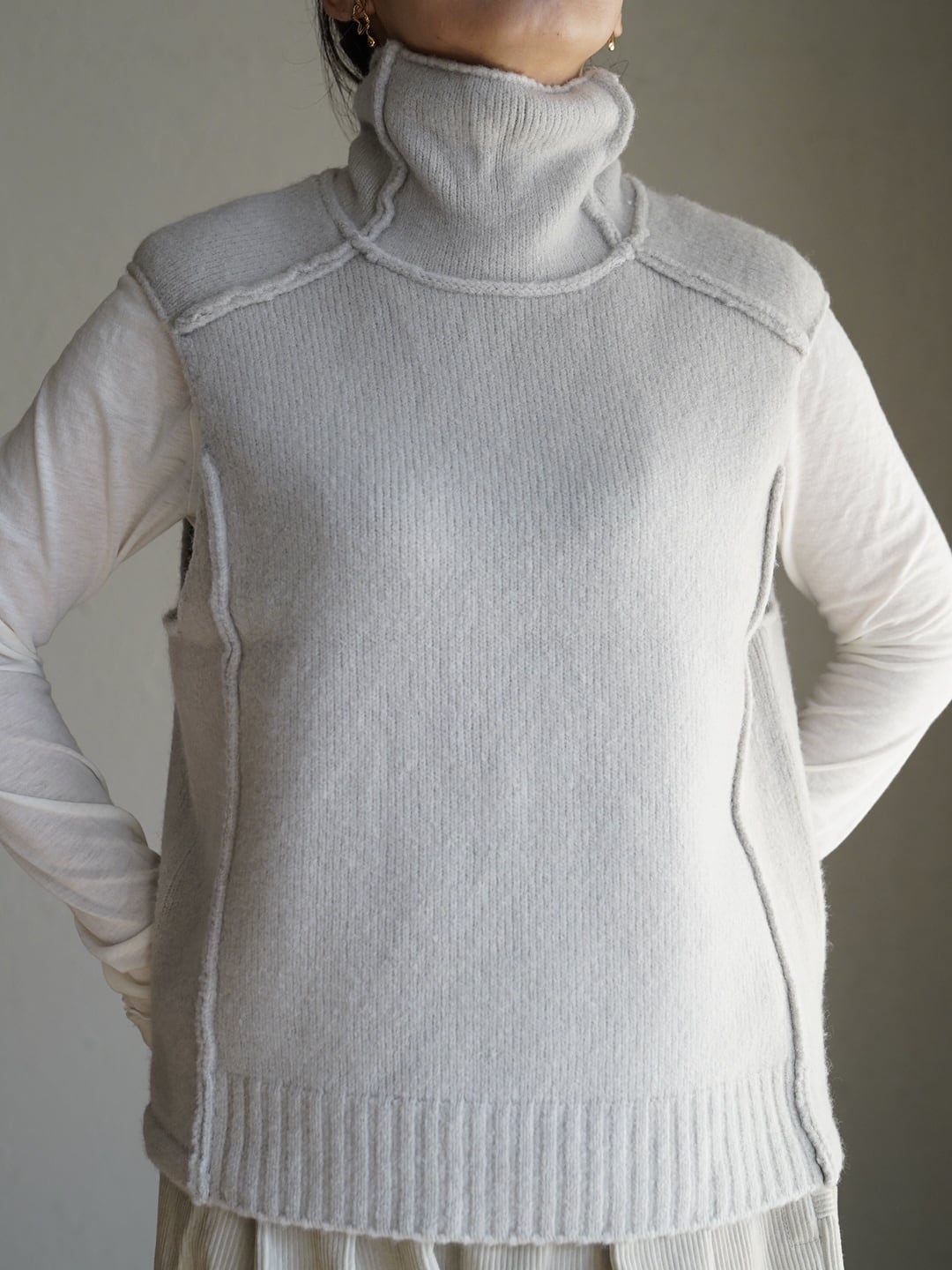 ヤク混ハイネックベスト