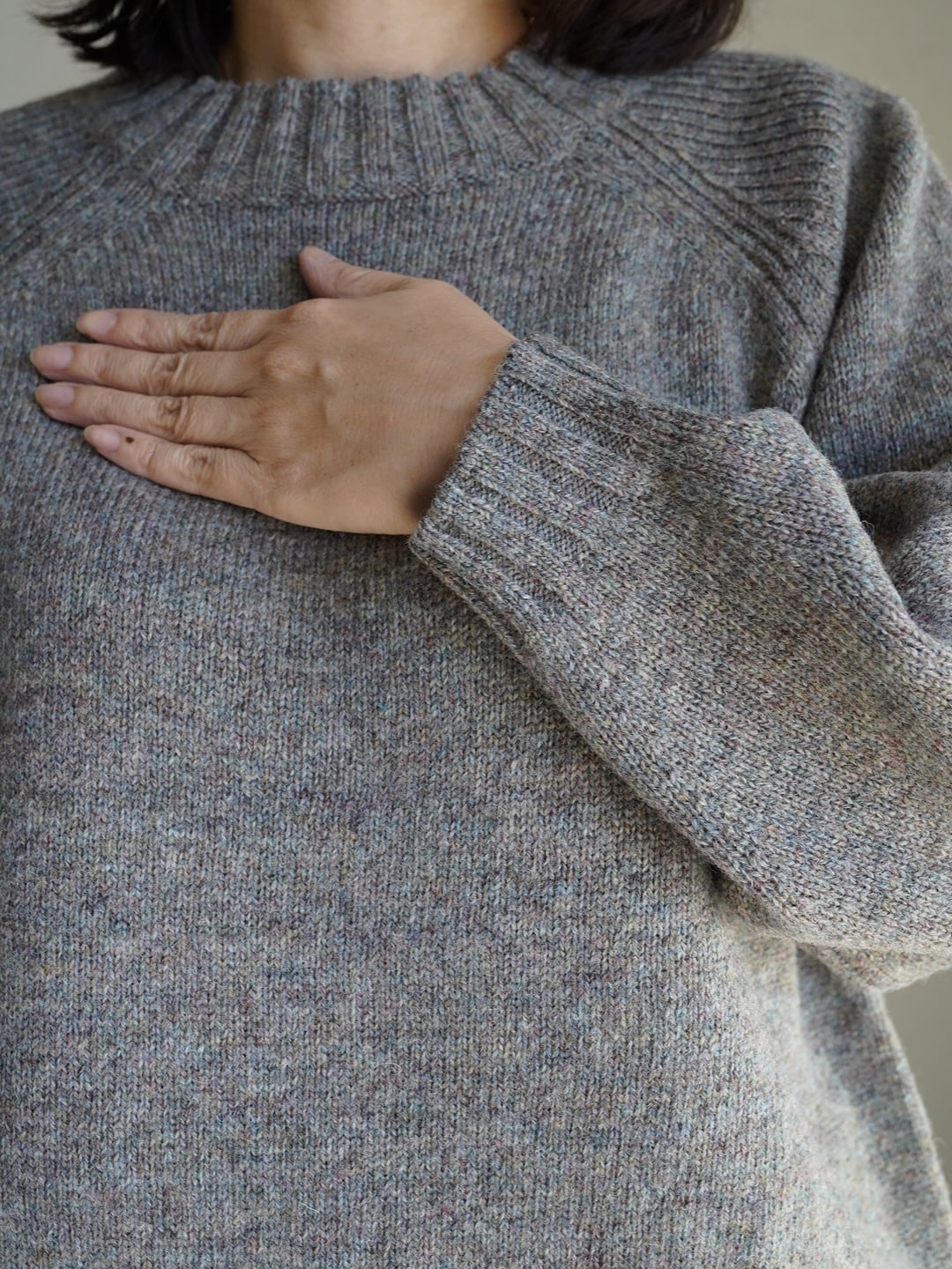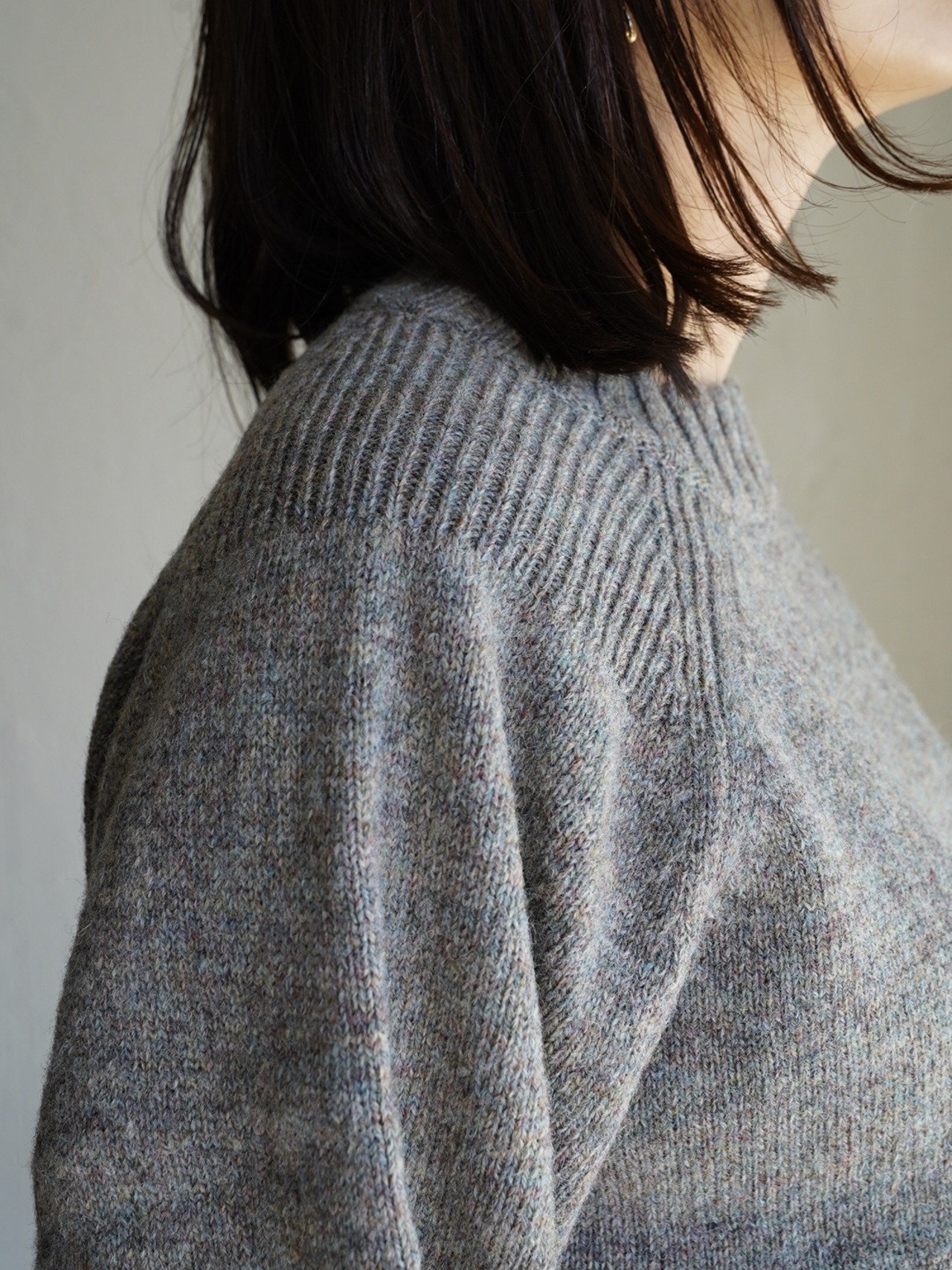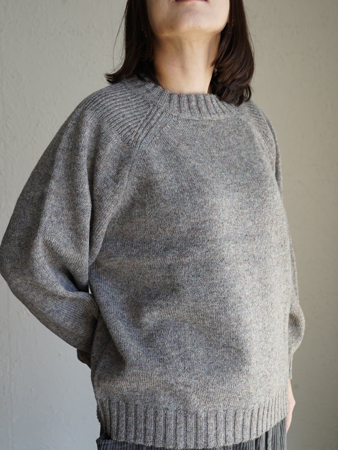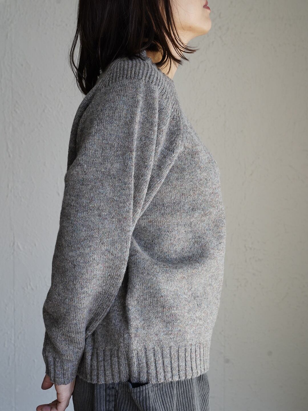 ウール100%のメランジニットプルオーバー。同系色のメランジがカジュアルながら、落ち着いた印象を与えてくれます。長過ぎず、短過ぎない丈感でスッキリと着用でき、幅広いコーデでの着用が可能です!