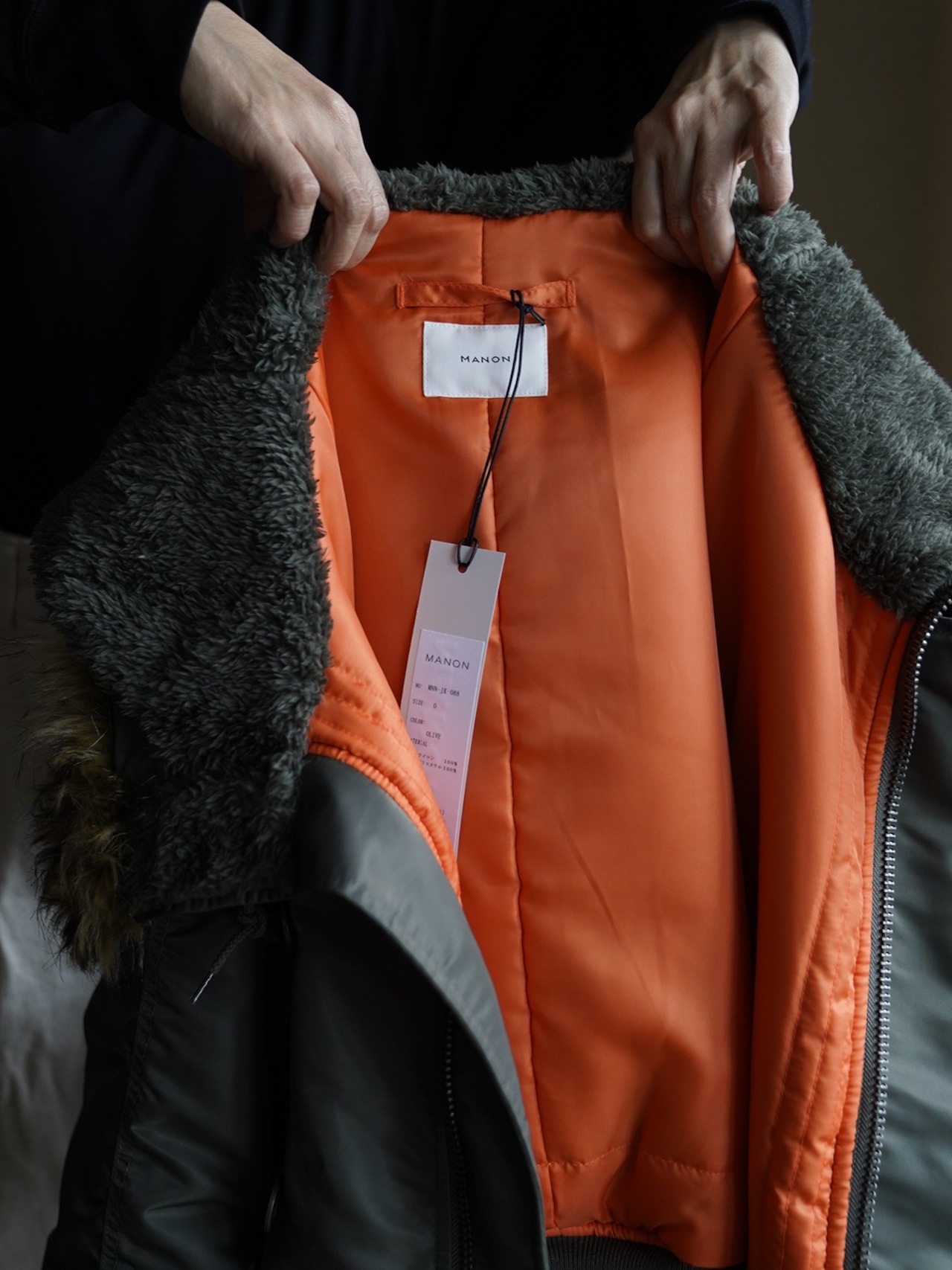 撥水加工が施された高密度ヘビーナイロンツイルのN2Bフライトジャケットは、ショート丈で着用しやすく、動きやすい作りになっています。アメリカ軍が極寒地用に開発した防寒ジャケット。クラシカルな感覚を残しながらも、ざっくりと羽織れるMANONのN2Bフライトジャケットをぜひこの冬の主役アウターに。
