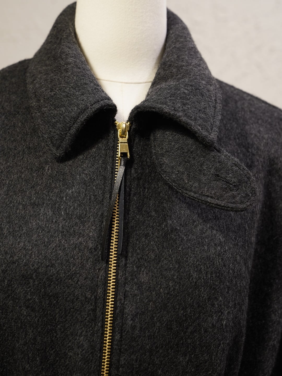 フロントは2WAYジップ開きのステンカラージャケット。