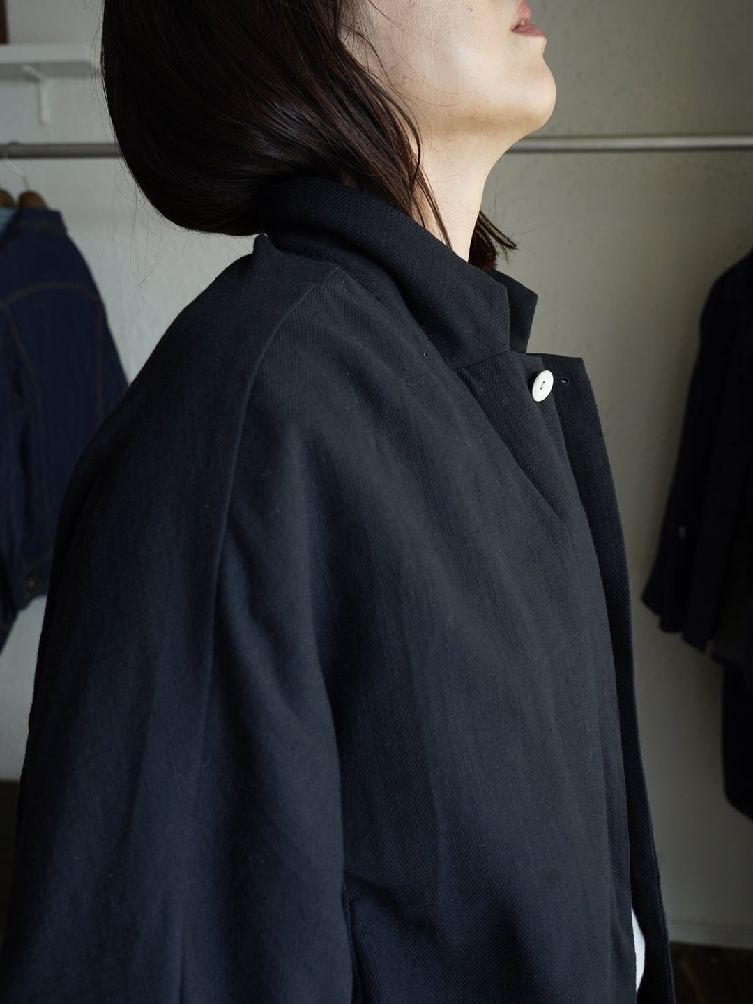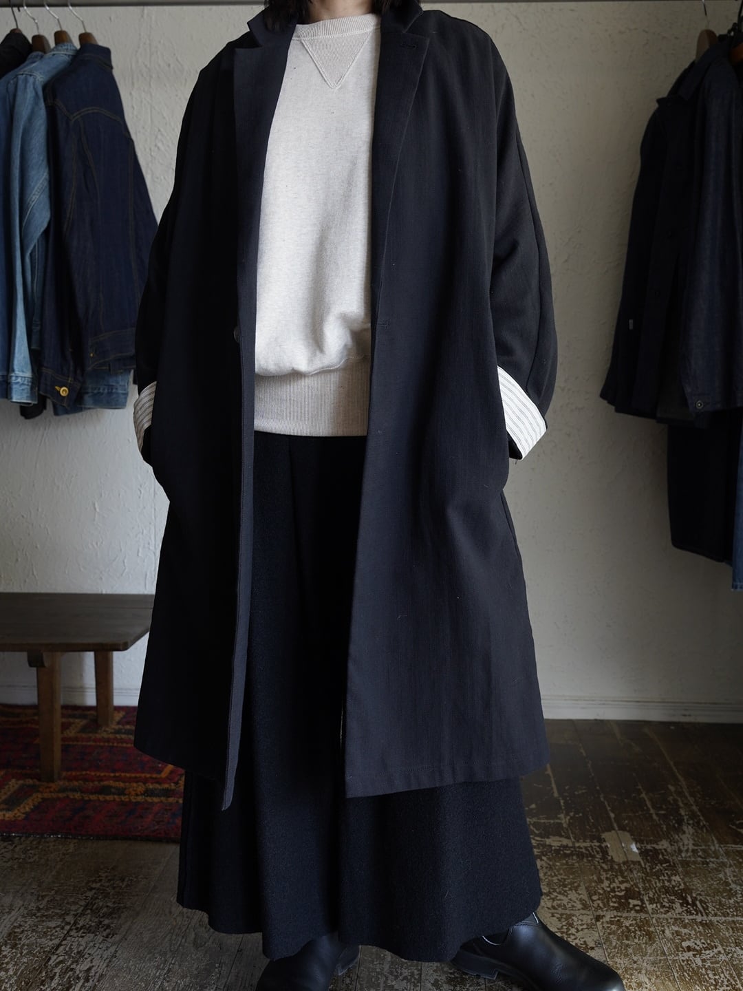 綿麻混の天然素材を使用した、粗野な雰囲気がこなれた印象のアトリエコートです。