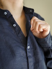 大麻100%の糸を経糸、緯糸に使用しています。大麻は強靭な繊維ですが、経年変化で肌に徐々に馴染んでゆき、麻から綿のような質感の変化が楽しめます。大麻の特性であるひんやりとした触感は洗濯を繰り返しても継続し、真夏でも快適に着用が可能です。