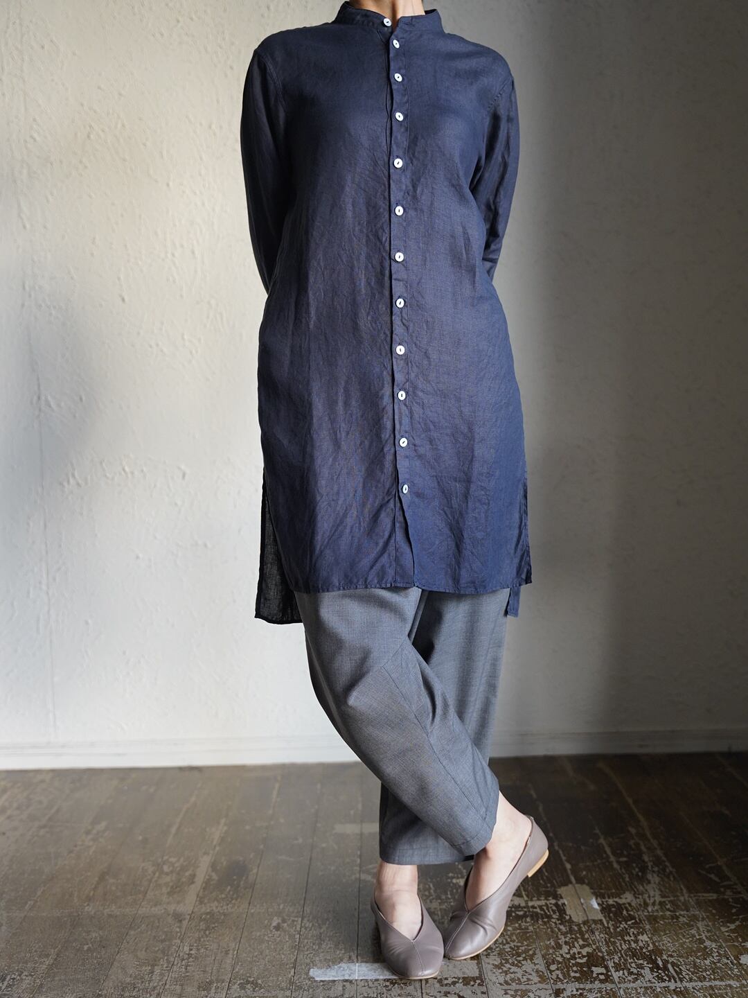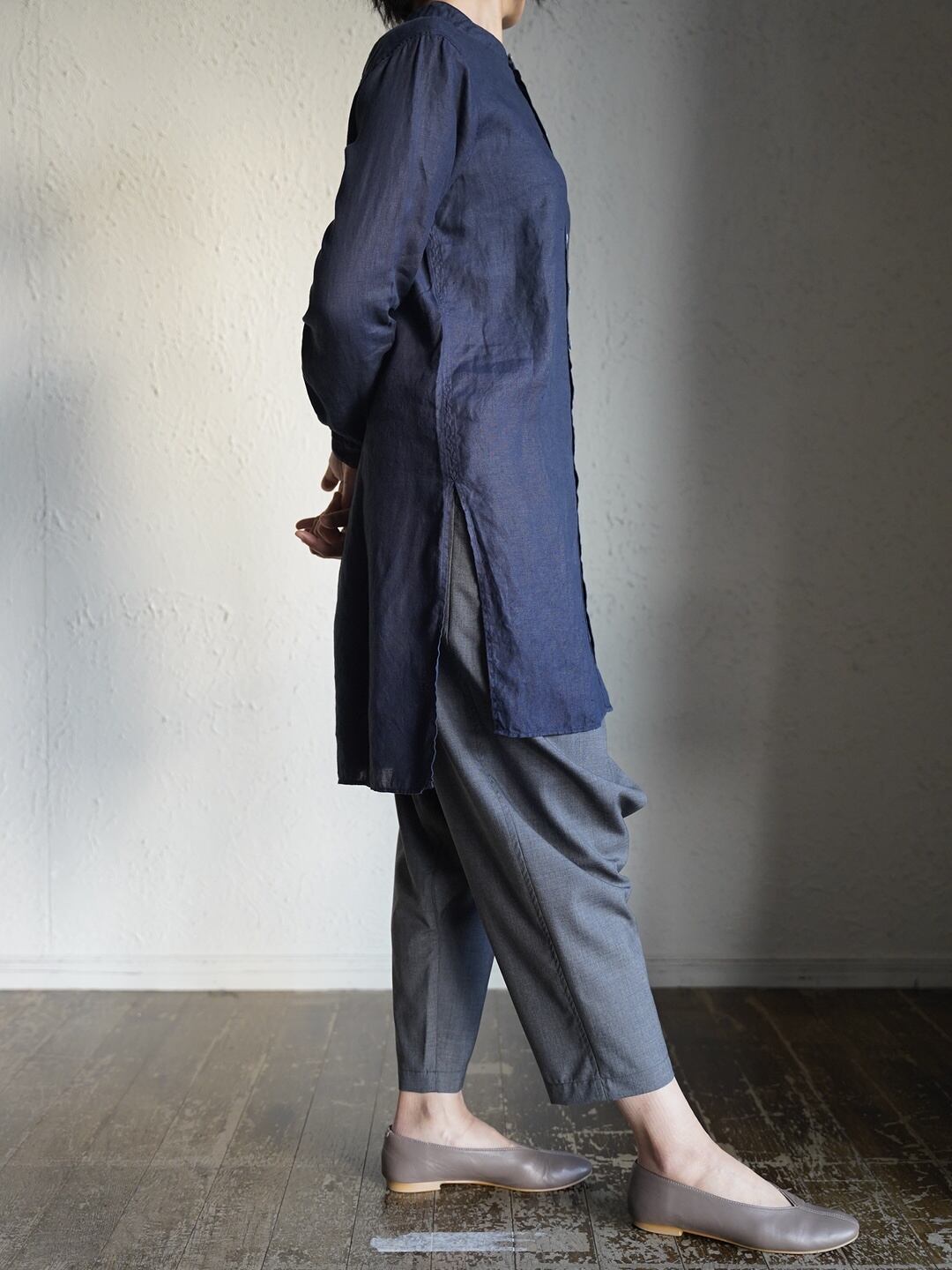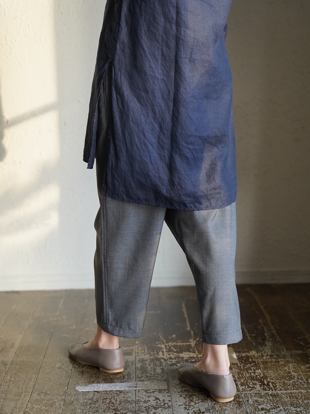 大麻100%の糸を経糸、緯糸に使用しています。大麻は強靭な繊維ですが、経年変化で肌に徐々に馴染んでゆき、麻から綿のような質感の変化が楽しめます。